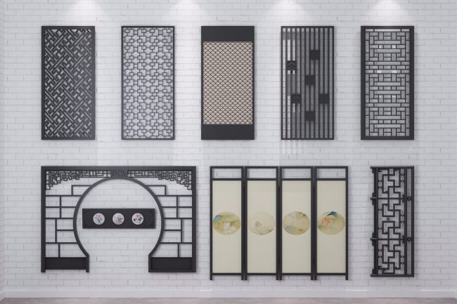 新中式屏风隔断组合01