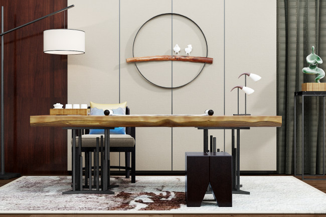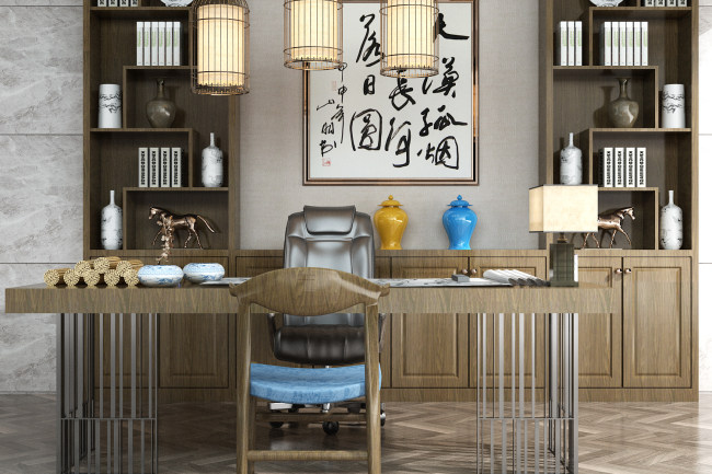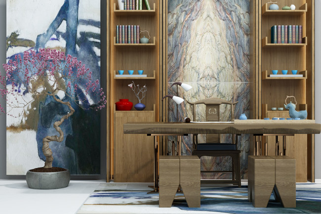 书桌茶桌背景墙书架组合 3D模型ID338427