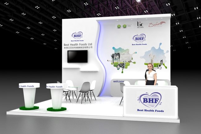 美容展,现代展厅,两开展位,展柜,原料展,美博会